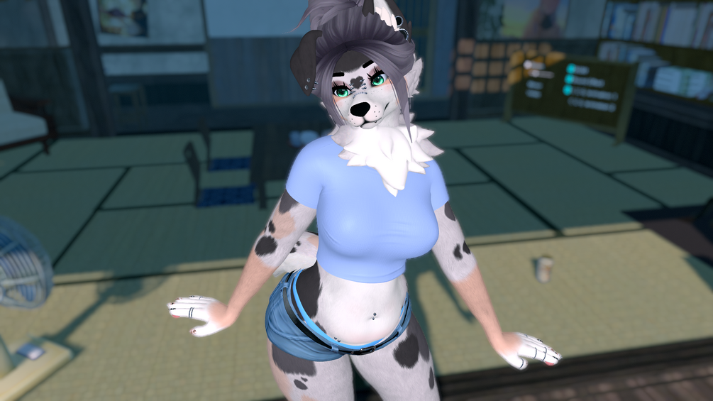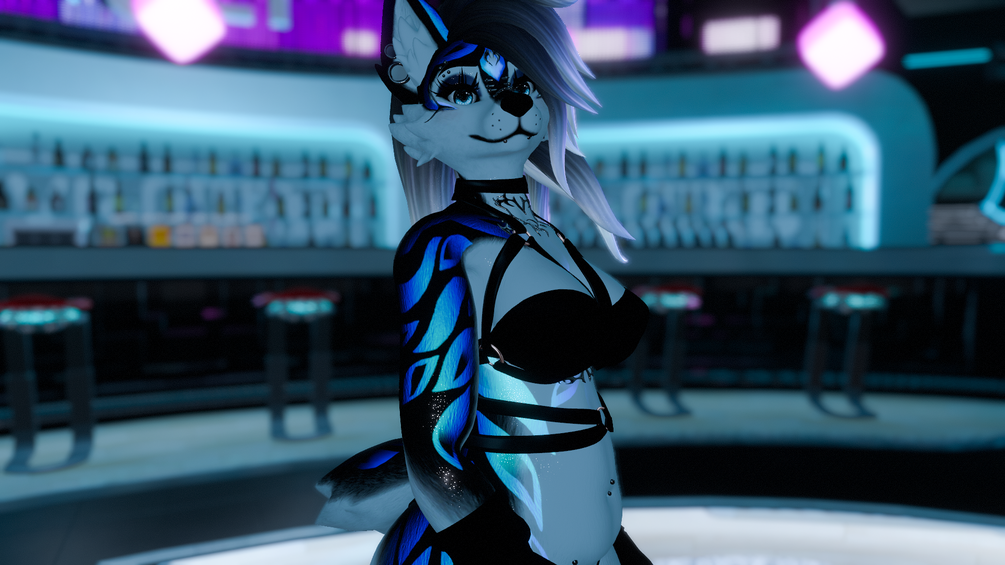 Fuzzy hug slippers, flannel, collar, and long hair option is not available on the quest version of the main avatar. The good rank does have the long hair option on quest and PC :) Quest Alt has only spikey hair, no harness, or fishnets. Colour hue, emission radials and many other things are NOT SUPPORTED on the quest platform, and therefore will be absent.