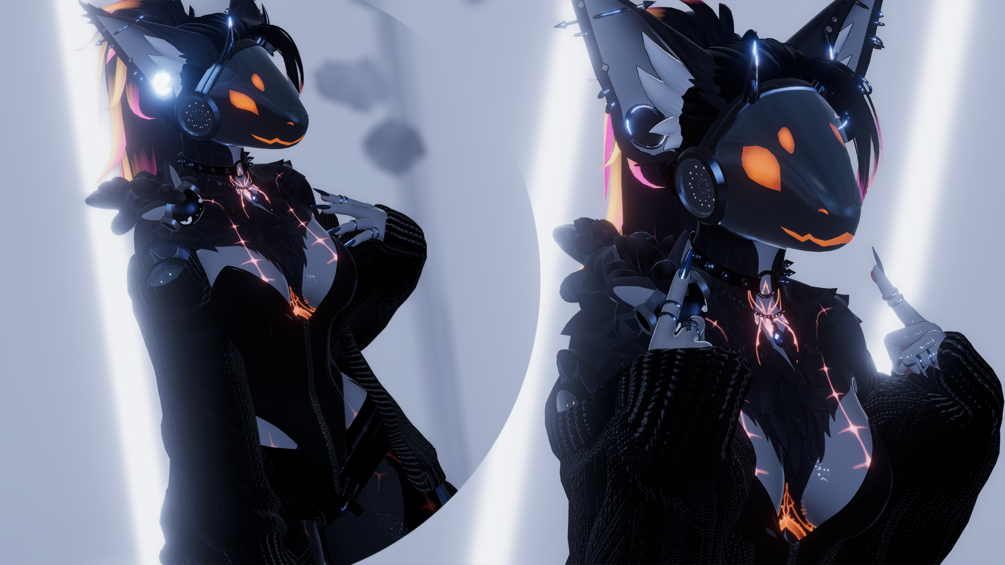 For face tracking to fit on the avatar I removed some smaller toggles such as ear tufts etc. These can still be adjusted in unity with a blendshape ^^ Facetracking versions have hue shifts!! The protogen follower and plushie did not fit with FT but they will be available server side for your adding preferences!